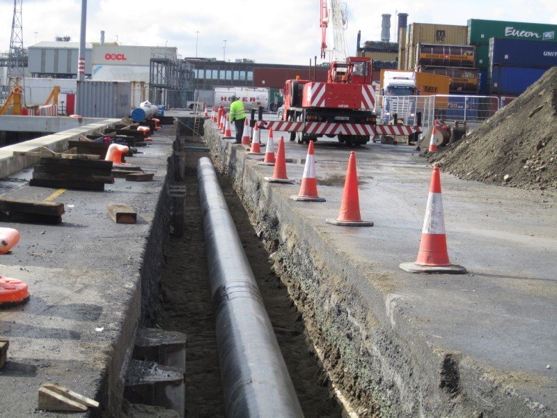 • The project was to run a pipe line from Berth 50 underground and tie into the ring main which runs around Dublin Port.